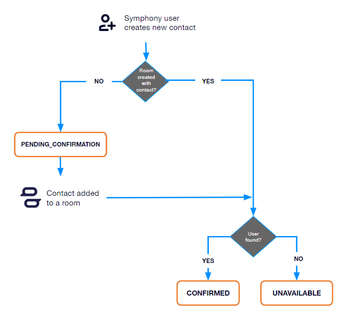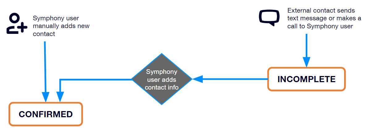 A contact who is not in a Symphony user's contact list is automatically onboarded after sending a message or making a call to the Symphony user's second (or virtual) number.